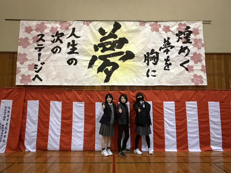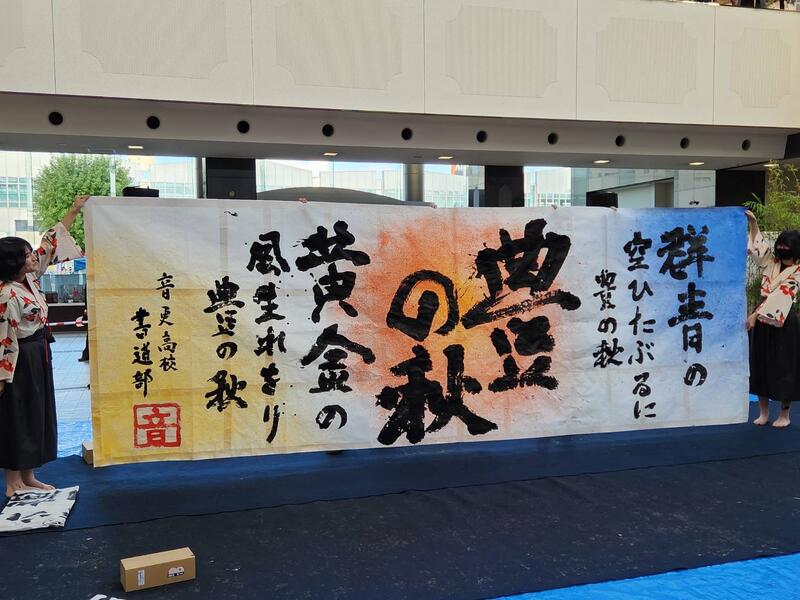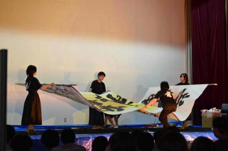 書道部 部活動紹介 投稿日時 : 03/25 thr 〈 大作制作について紹介します 〉 ■ 学校祭書道パフォーマンス 7月、学校祭の書道パフォーマンス練習中の一コマ。 気合い入っています! パフォーマンス本番、書き上げた作品を披露します。 作品が立ち上がりました。会場からの拍手と歓声に、部員大感激! ■ おびひろ菊まつり 書道パフォーマンス 10月、とかちプラザにて十勝管内の6校の書道部が集まりパフォーマンスを披露! ■ 卒業式 体育館の装飾作品制作 3月卒業式、在校生から卒業生に送ることばをテーマに作品制作しました。 背景の桜にもこだわってみました。 Tweet {{options.likeCount}} {{options.likeCount}} {{options.unlikeCount}} {{options.unlikeCount}} 0 コメント